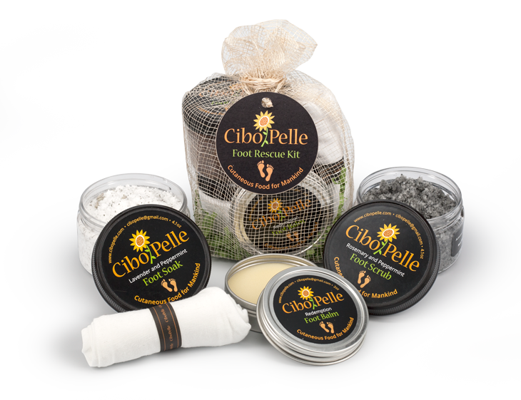 Are you terrified of one day developing feet like your grandmother? No worries, Cibo Pelle has the answer! Cibo Pelle's new Foot Rescue Kit has been designed specifically to help repair and correct rough, dry, and cracked feet. As we age, the natural exfoliation process and production of new skin cells on our feet occurs at a much slower rate, causing a buildup of skin cells. After many years, this clumping of cells combined with very few oil glands can result in dry, rough and calloused feet.