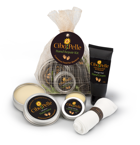 At Cibo Pelle we believe in the importance of healthy hands so we have created a new Hand Repair Kit intended to mend and beautify your hands. Our new line of hand care products are created by using only all natural, preservative-free, and plant-based sources. These products can be used in combination with the Hand Repair Kit for cracked, painful, chapped hands or individually to help maintain soft, smooth, beautiful hands.